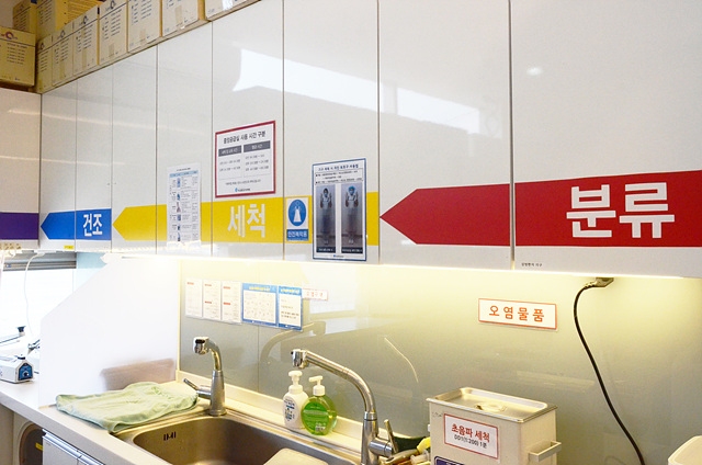 직접적으로 환자분에게 닿게 되는 도구들은 바로 밀폐용기에 담아 중앙공급실로 이동시킵니다. 일회용품은 바로 폐기하고, 혈액 또는 타액이 묻은 기구는 바로 세척 -> 소독 -> 멸균의 과정을 거칩니다. 에스플란트 치과병원은 전문 소독관리사님의 케어를 통해 보다 꼼꼼하게 관리를 진행하고 있습니다.